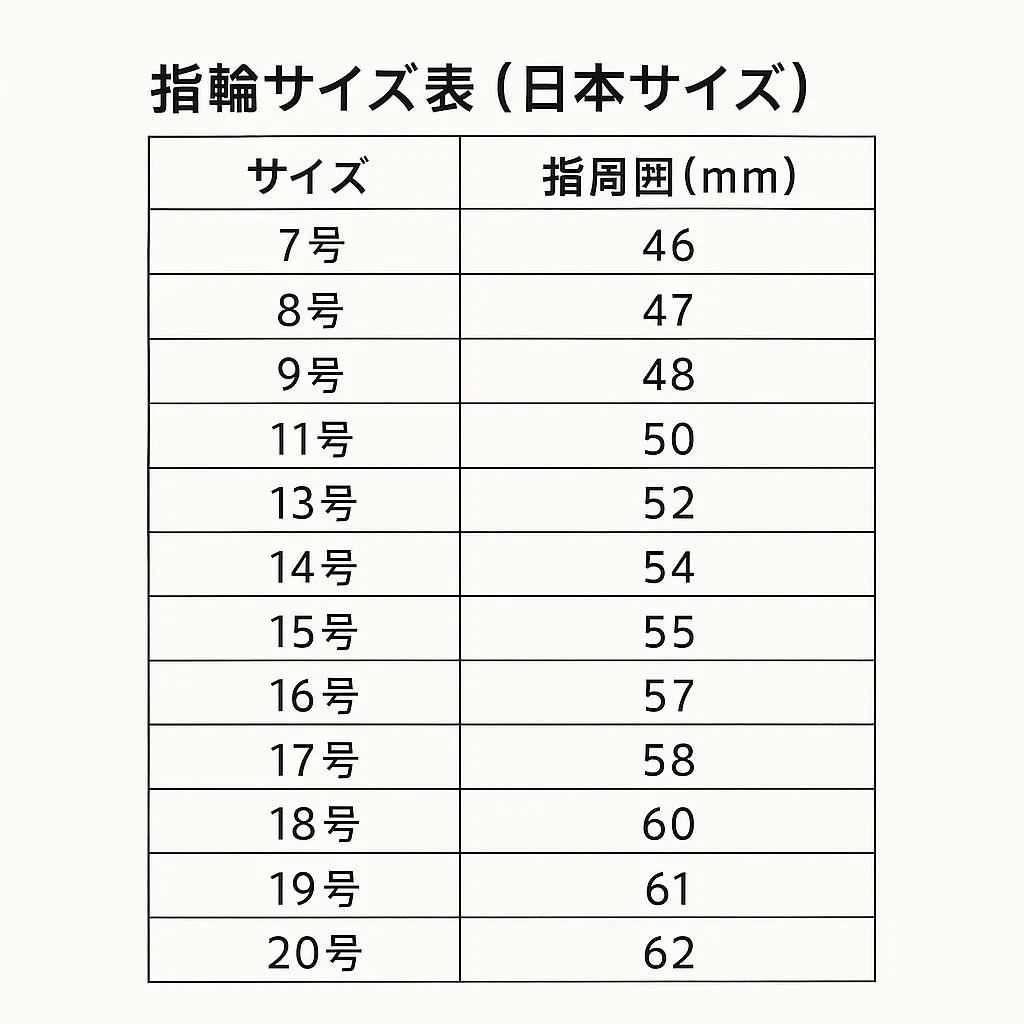 このサイズ表と測り方を活用して、毎日心地よく身につけられるリング選び、大切な人へのギフトにもお役立て下さい!