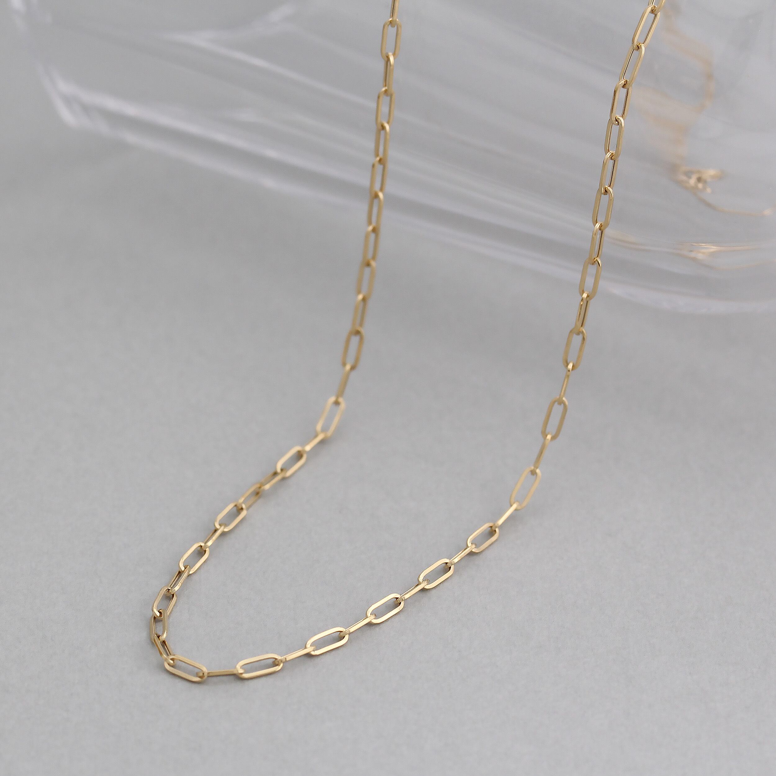 シャープな縦長ラインが美しい、クリップチェーンネックレス。
