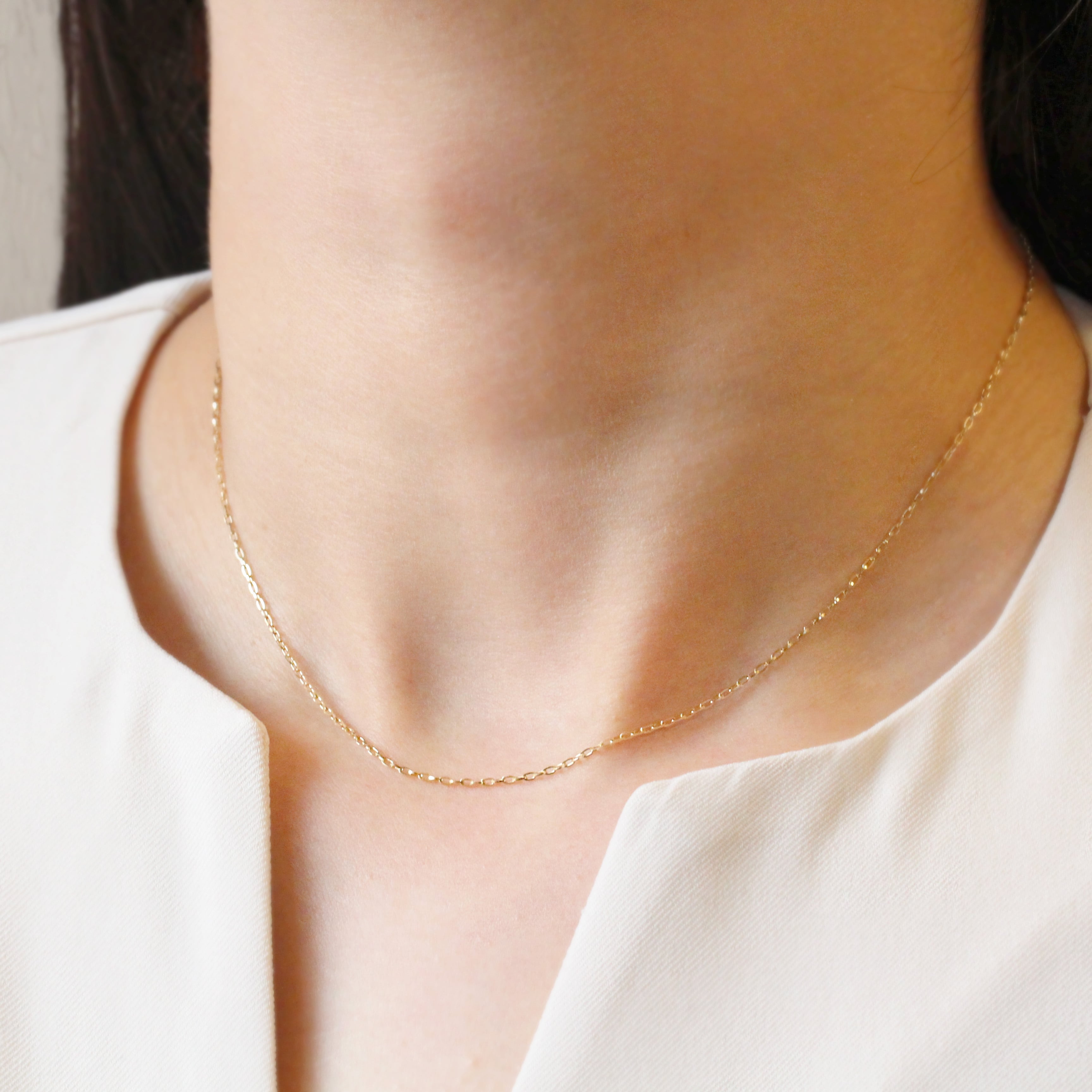 K10イエローゴールドチェーンが胸元を煌かせ、どんなシーンでも輝きを与えます。