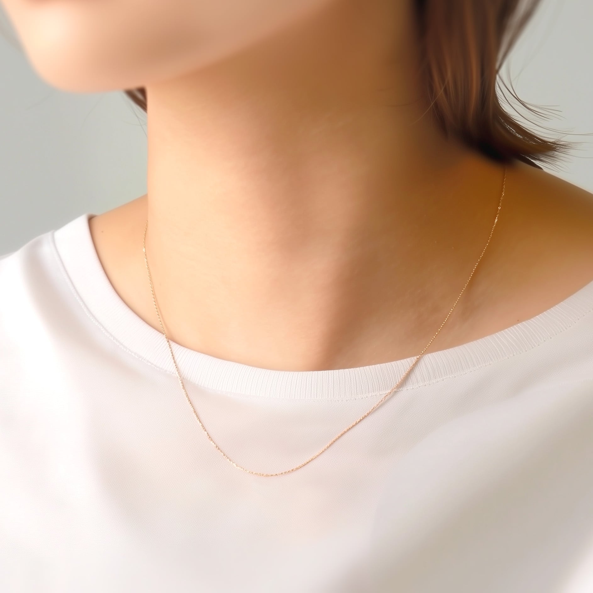 K18 ならではの上品な輝きがデコルテに華やかさを添えてくれます。