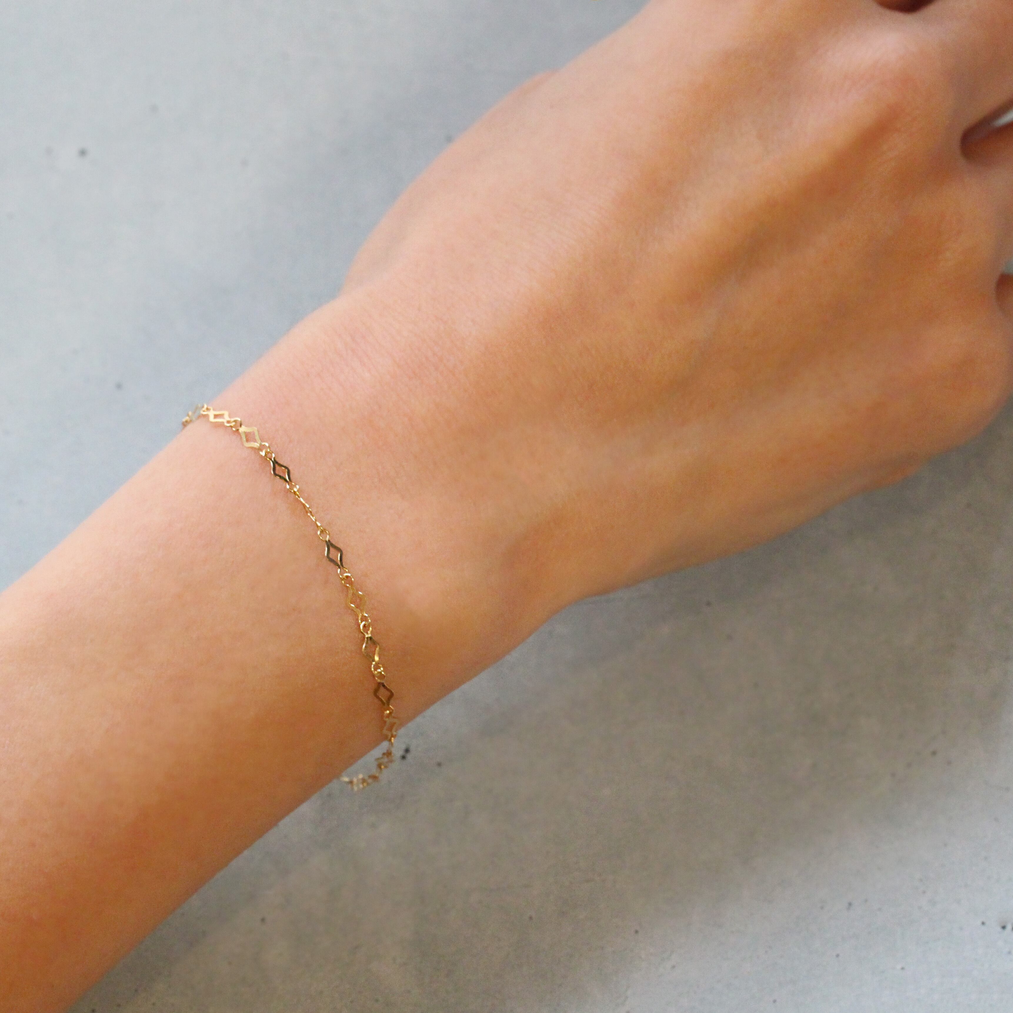 ダイヤモンド型の品のあるチェーンが手元を華やかに彩ります☆