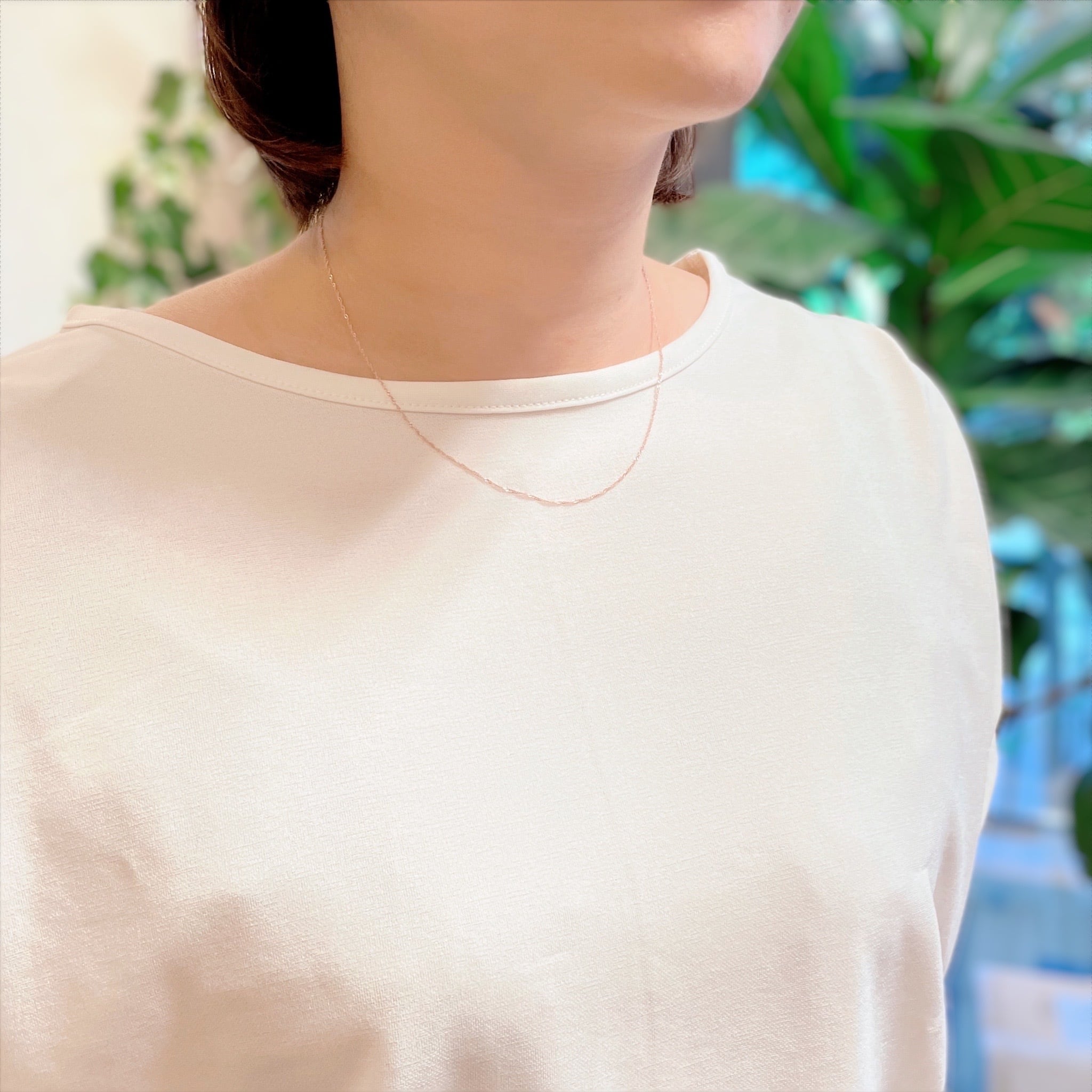 素肌にとけ込み、さりげなく輝きをプラスしてくれるツイストチェーンネックレスです。